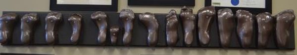 The image above is showing the different molds of feet we worked with. We have made custom molded orthotics for many different foot conditions.