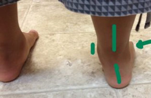 Notice how the foot is rotated (everted) and the arches are flattened.